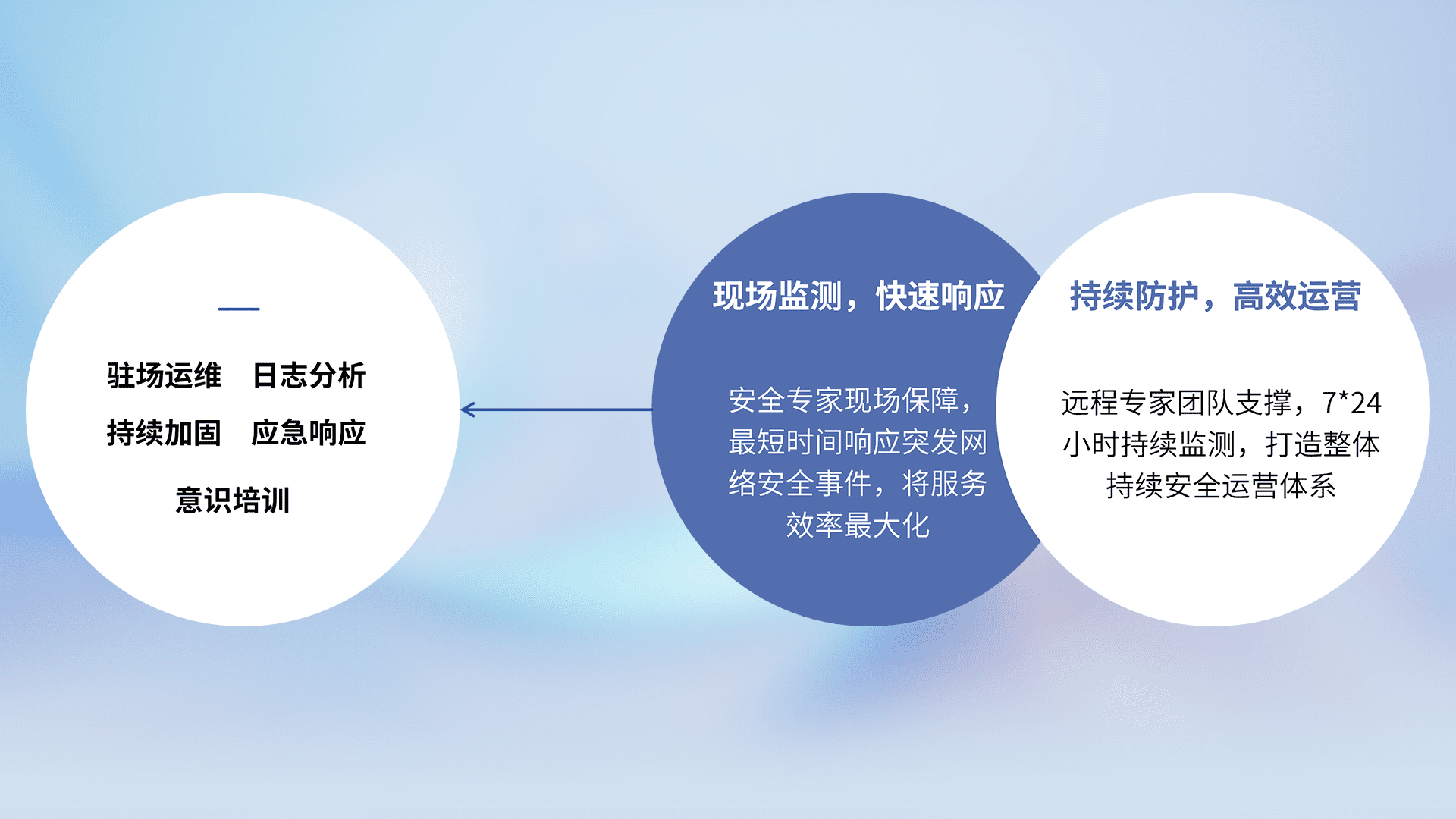 7X24小时持续监测安全事件,保持安全策略有效性,降低资产脆弱性风险,,,,精准拦截黑客攻击,,减少被黑客利用的机会,,,,第一时间遏制,,,降低损失。。。。