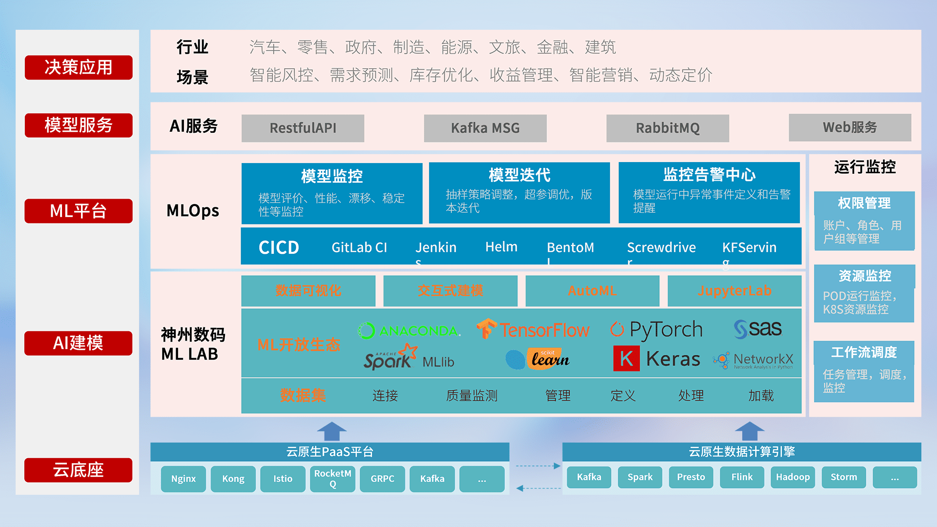 数据+模型双引擎驱动,,,,面向智能服务场景,,,,快速灵活利用AI技术,,,,支持业务决策,,助力企业智能化转型破局。。。。